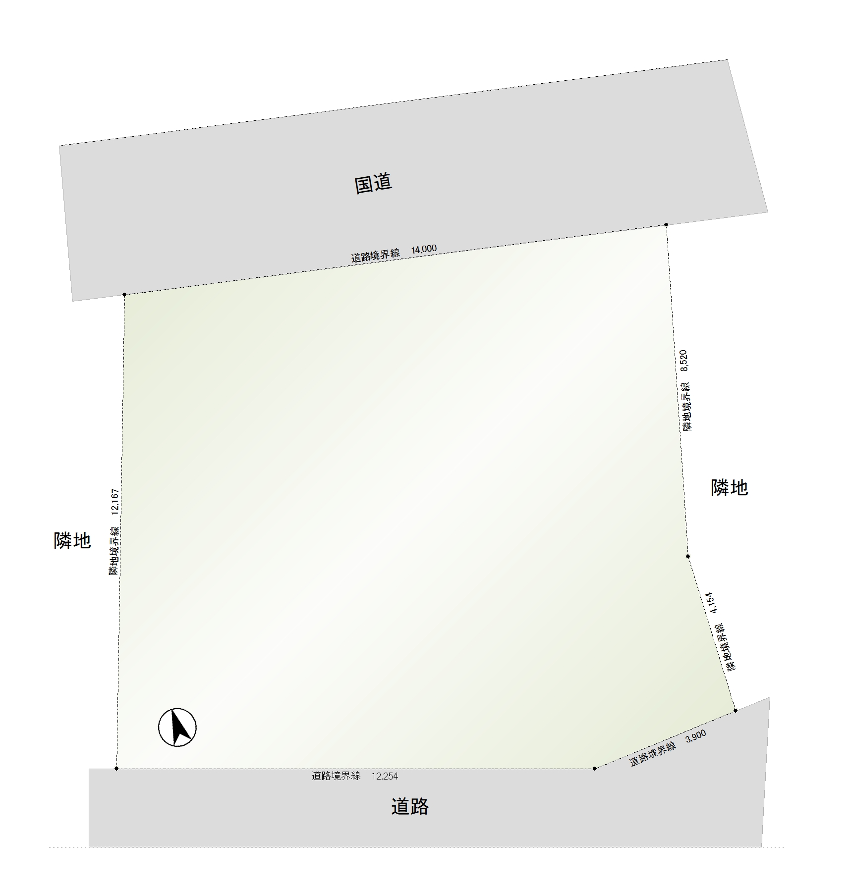 ■接道:北側国道に約14m接道・南側幅員道路に約16m接道